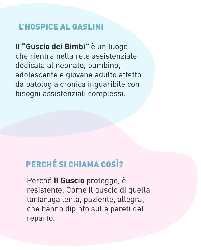 L'Hospice pediatrico è una struttura residenziale alternativa all'ospedale, ad elevata complessità assistenziale, sia da un punto di vista strutturale che organizzativo, ma a dimensione di bambino, con spazi, luoghi, arredi adeguati all'età, in un ambiente molto simile a quello in cui vive normalmente una famiglia.